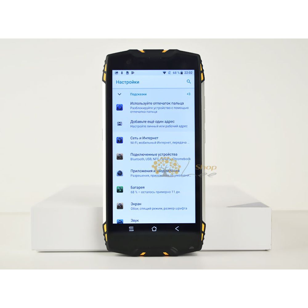 Объем встроенного хранилища составляет 64GB. Это предоставляет возможность хранить в ПЗУ аппарата тяжеловесные файлы. Водостойкий смартфон способен запускать любые игры, благодаря сочетанию из 4GB ОЗУ и чипа MT6750T..