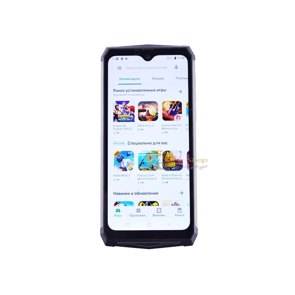 Защищённый смартфон Blackview BV9100 - один из немногих смартфонов, обладающий огромным дисплеем и при этом крепким ударостойким корпусом. Философия модели достаточно проста: нужно использовать те функции, которые больше всего нужны подавляющей масе людей и получить успех - так и вышло. В Blackview BV9100 используется корпус с защитой по стандарту IP68 и IP69K - такой же, как на всех флагманских защищённых смартфонах. Так же отметим, что девайс абсолютно точно понравится тем, кто ценит большие объёмы аккумуляторов в телефонах - здесь он имеет ёмкость целых 13000 мАч! Да, немалый вес телефона так же присутствует, он с лёгкостью перевалил за 300 гр, а сами габариты соответствуют большой автономности. Корпус телефона прорезиненный, сзади на металлической вставке есть две камеры и яркая вспышка. Спереди дисплей, который имеет диагональ в 6.3 Дм и разрешение FHD+. Матрица здесь вне всяческих похвал, она действительно очень качественная, без изъянов. По центру дисплея сверху находится небольшой выступ, внутрь которого установили камеру. По параметрам это хороший средне ценовой аппарат, во главе с процессором Helio P35. 8-ядерная основа и частота в 2.3 ГГц позволят Вам получить достаточное наслаждение от работы с данным гаджетом. Он весьма производителен, а так же энергозатраты его минимальны. Есть в телефоне поддержка беспроводной зарядки, а так же - учитывая ёмкость аккумулятора, без зарядки сможет телефон проработать до 4 суток! Задние камеры на 16 и 21 Мп - самое то для подводной видео съёмки. Фото снимают они так же весьма неплохо, а тем более с учётом очень быстрого авто фокуса Вы получите идеальные снимки. Камера действительно удивляет фото возможностями, особенно в условиях хорошей освещённости. Да, Blackview BV9100 это та модель, которая имеет всё необходимое для активных пользователей, туристов и представителей рабочих профессий!