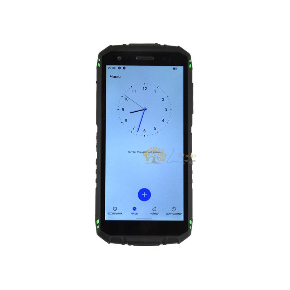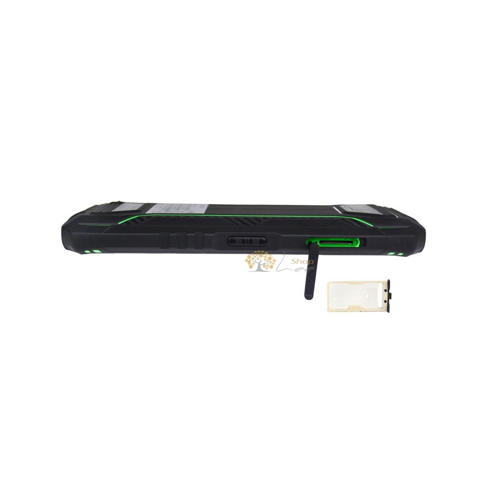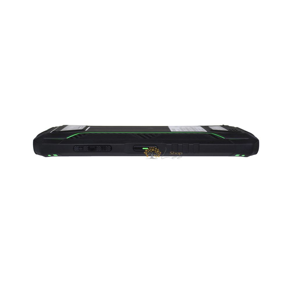 Корпус, естественно, полностью защищен от ударов и воды, стандарт защиты у него IP69K. Продуманная структура корпуса, отличный уровень качества материалов и великолепная компоновка модулей управления дали возможность этому смартфону быть максимально удобным. Зеленые вставки на черном корпусе - то, что многим понравится, ведь так смартфон выглядит нестандартно. На фронтальной панели дисплей без каких-либо вырезов - динамик и датчики находятся в плоскости самой панели корпуса.