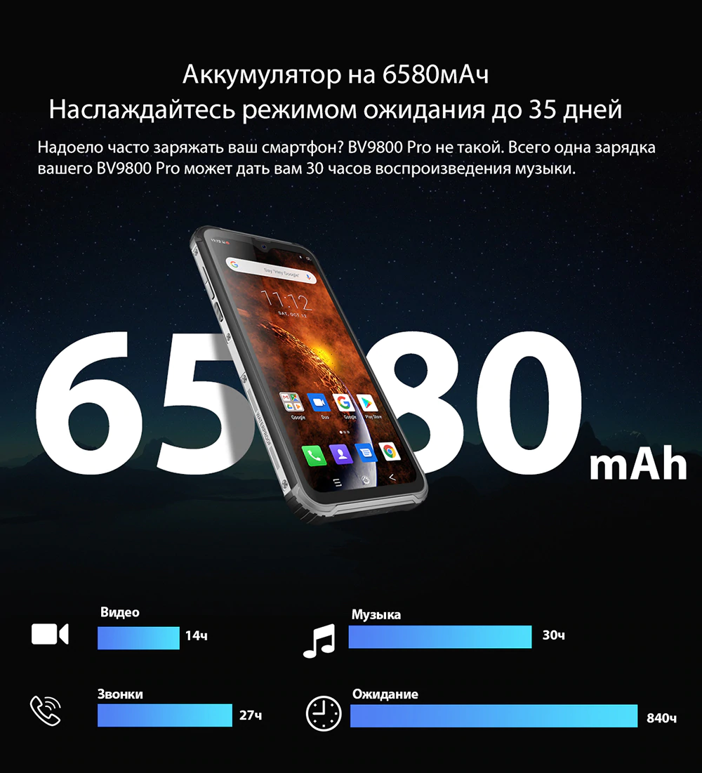 Надоело часто заряжать Ваш смартфон? Blackview BV9800 Pro не такой. Всего одна зарядка вашего BV9800 Pro может вам дать 30 часов воспроизведения музыки.