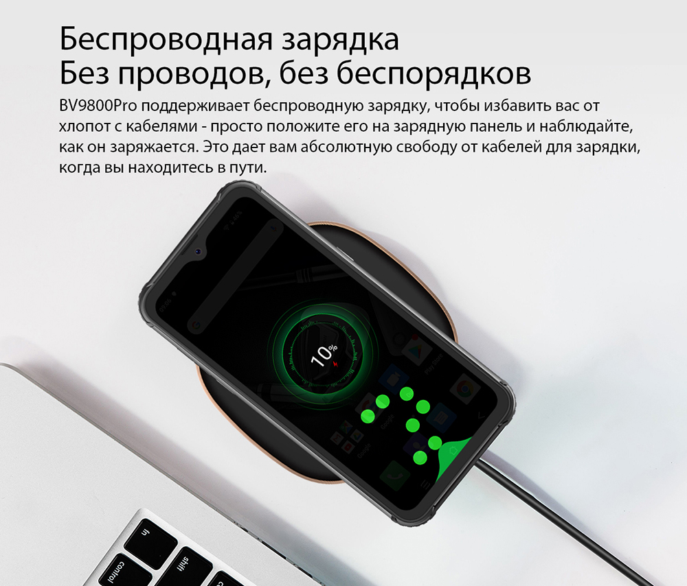 Без проводов, без беспорядков! BV9800 Pro поддерживает беспроводную зарядку, чтобы избавить вас от хлопот с кабелями - просто положите его на зарядную панель и наблюдайте, как он заряжается. Это дает вам абсолютную свободу от кабелей для зарядки, когда находитесь в пути.