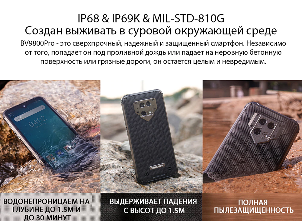 BV9000 Pro - это сверхпрочный, надежный и защищенный смартфон. Независимо от того, падает ли он под проливной дождь или падает на неровную бетонную поверхность или грязные дороги, он остается целым и невредимым.
