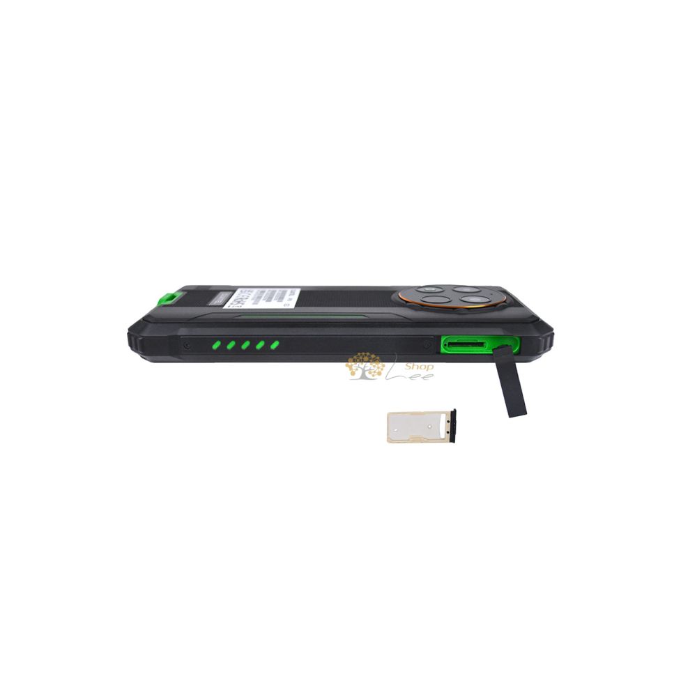 Визуально смартфон явно выглядит не хуже, чем модели вдвое дороже, в этом плане производитель постарался. Толщина корпуса 17.1 мм, и при наличии большого аккумулятора смартфон в целом ощущается весьма эргономичным. Особенно привлекательно выглядит задняя панель, где располагаются две камеры, вспышка, а так же сканер отпечатков пальцев. Есть и крепление для шнурка, оно выделяется зеленым цветом, как и две полоски на задней панели. Степень защиты IP69K, и этого точно хватит для самых жестких условий использования.