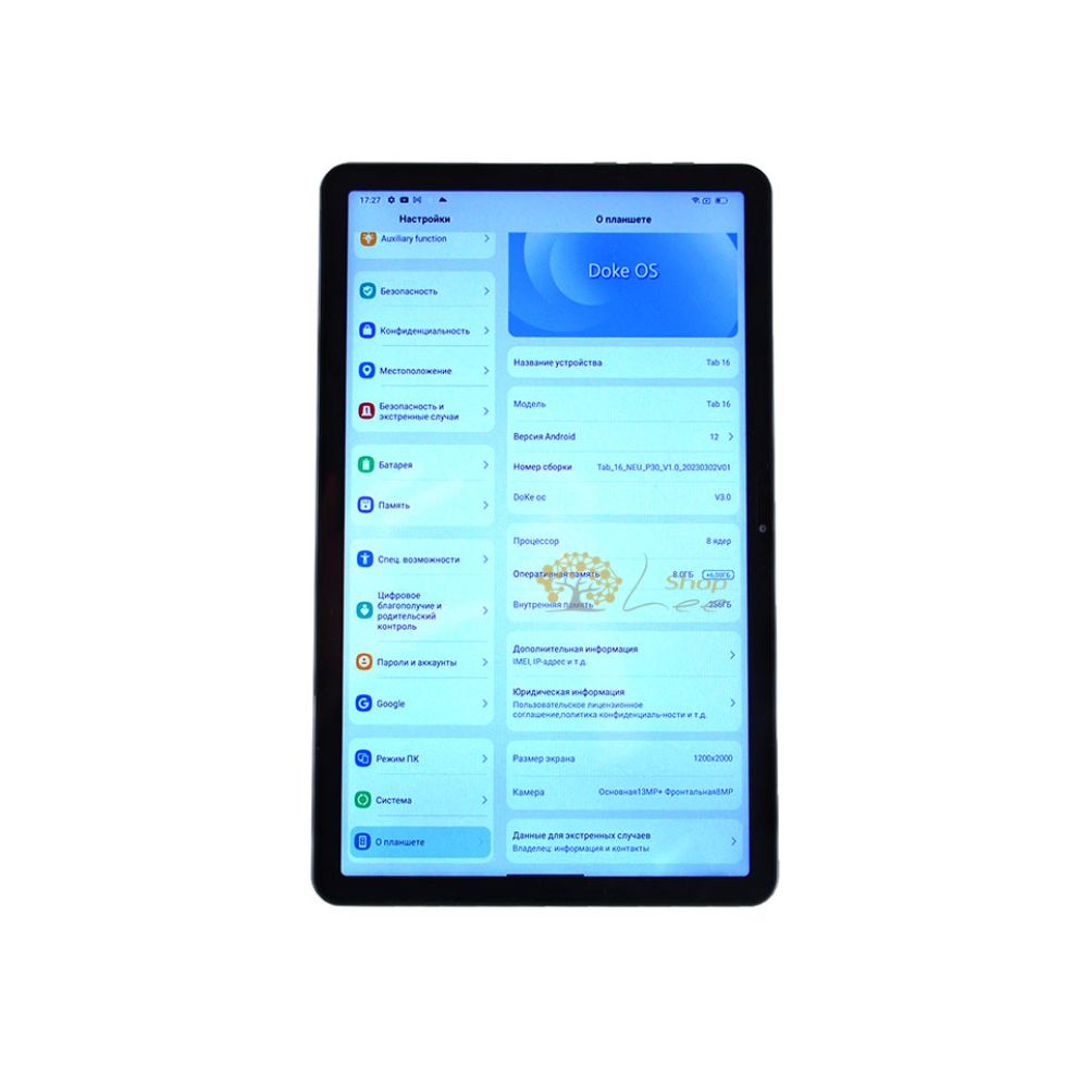 В планшете Blackview Tab 16 (8+256Gb, АКБ 7680 мАч) LTE Grey есть поддержка установки 2 сим-карт, карту памяти так же можно установить. Работает устройство под управлением операционной системы Android 12, фирменная графическая оболочка Doke OS 3.0 обеспечивает отличное быстродействие. Комплектуется данная модель стилусом, что безусловно приятно видеть в столь доступном устройстве, как и чехол-книжку. Управляет планшетом мощный 8-ядерный процессор Unisoc T616, который оснащен 8 ядрами и частотой до 2 ГГц. Память оперативная представлена объёмом 8 Гб, постоянной памяти 256 Гб и это более чем круто иметь за небольшие деньги. Аккумулятор получил ёмкость 7680 мАч, что в обычном режиме использования даёт около 5-6 часов активности дисплея.