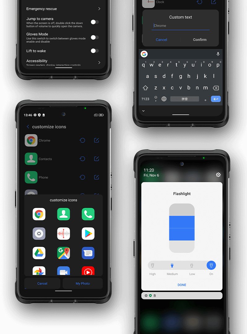Ulefone Armor 10 5G працює під управлінням нової операційної системи на базі Android 10. Він додає більше 100 оновлень, зберігаючи при цьому оригінальні функції Android 10. Він підтримує настройку значків і назв додатків, включаючи простий режим, дитяче простір, блокування додатків, прискорення гри. , І багато інших функцій. Ви навіть можете налаштувати свої відбитки пальців для відкриття різних додатків. Поряд з високою продуктивністю MediaTek Dimensity 800 SoC і надшвидкої мережею 5G, він запропонує вам більш плавне і зручне використання Android.